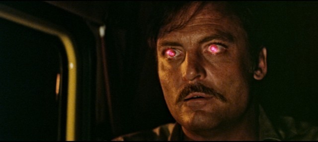 デイヴィッド・リンチ的な悪夢的なシーンも展開される本作だが、深夜の荒野を行く目を見張る1台のバン<目玉車>をフィーチャーした、世界的に見ても衝撃的デザインとなった。