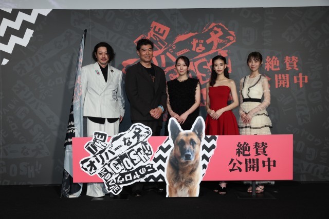 映画上映後、大勢の観客が集まった会場にオダギリ監督が自ら製作した「THE オリバーな犬、(Gosh!!)このヤロウ MOVIE」の特製フラッグを華麗に振り回す吉岡里帆を筆頭に豪華キャスト陣が登場すると、会場は冒頭から大盛り上がり。まず吉岡が「テンちゃんという名前は、実は麻生(久美子)さんが名付けの親でして。とても気に入っています。今日はよろしくお願いします」とあいさつ。「今日は話したいことが山のようにありすぎて。