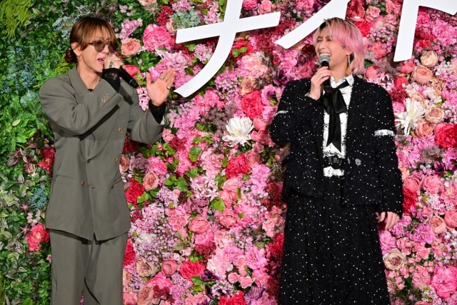夜の街で暗躍するドラッグの元締めサトウ役の渋谷は演技初挑戦。「撮影が終わるまで『本当に俺が出て良いのか?』とずっと思っていました。バンドを 20 年やっていて、色んなことを知った気になっていたけれど、今回の挑戦は本当に知らない現場で独特な緊張感と空気が流れる中、自分が芝居している事がフワッとしていて」と、かなり緊張した様子。そんな中、共演した北川、佐久間、森田には最敬礼で「緊張して5 時間くらい同じ場所に座っているような僕を解きほぐして、場の空気に馴染ませてくださったのが印象的。お芝居が楽しいなと思えました」と感謝しきり。佐久間は俳優・渋谷の存在感を「圧倒的な迫力」と賞嘆していた。