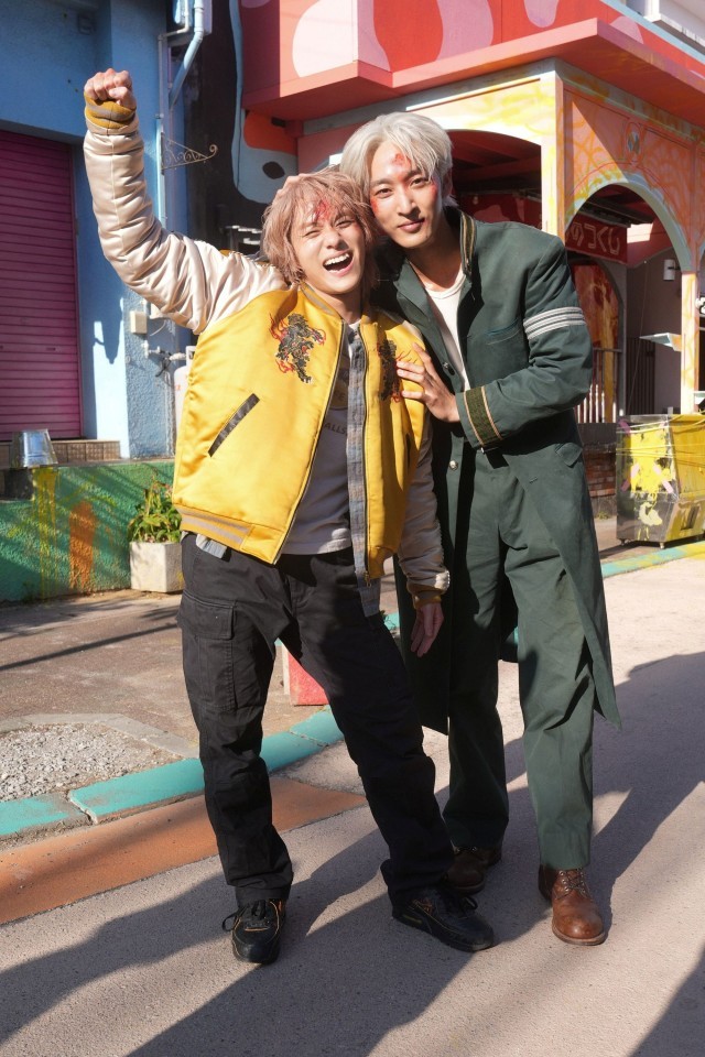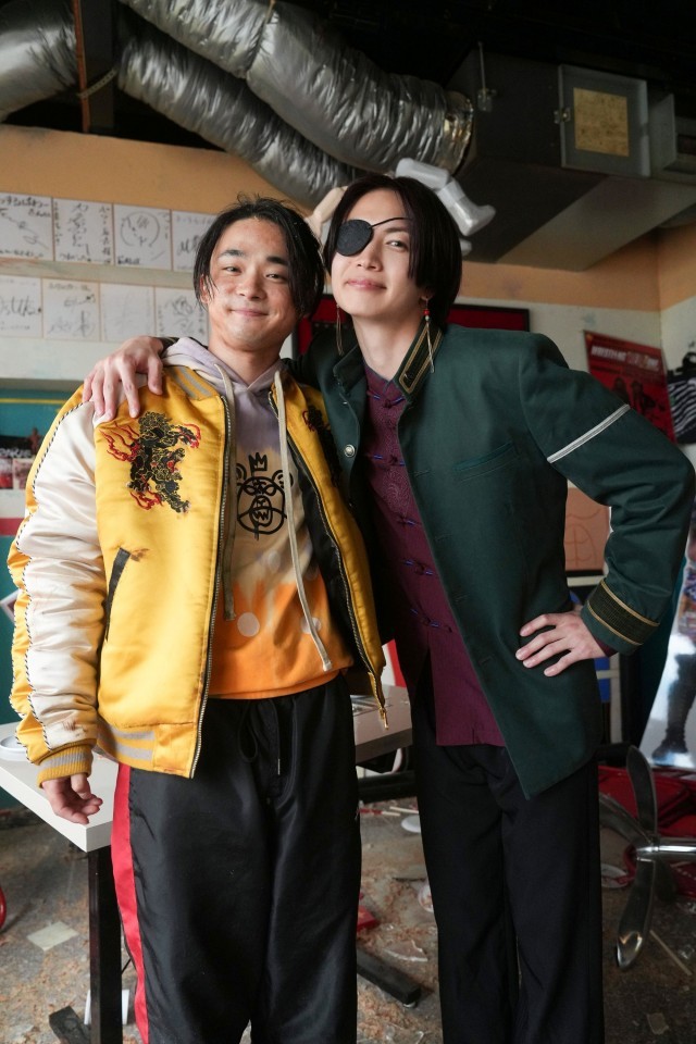 さらに、杉下(JUNON)VS有馬(高橋)、蘇枋(綱)VS鹿沼(萩原)、柊(中沢)VS佐狐(曽田)、そして“大将戦”を堂々と演じた兎耳山(山下)VS梅宮(上杉)──。壮絶な闘いを繰り広げた者同士が、肩を並べて笑顔を向けるカットも多数。<防風鈴>も<獅子頭連>という立場を越え、作品を通して築かれた信頼関係が、そのまま写真に焼き付けられている。