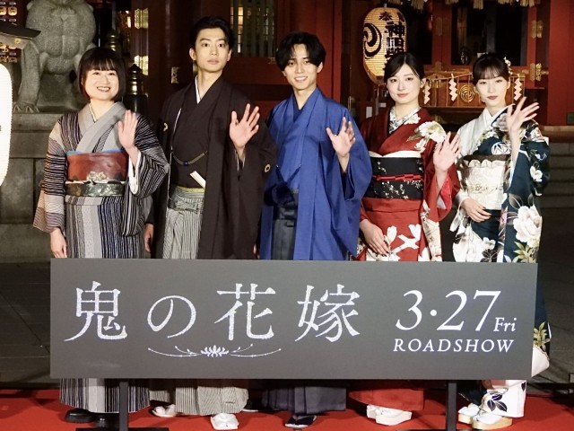 最後に、吉川さんは「キャストの皆さんとスタッフの皆さんで一生懸命作った作品で、本当に素敵な作品が出来上がったので、一人でも多くの方に観ていただけると幸いです。」と挨拶。永瀬さんは「この映画は冒頭から『鬼の花嫁』の世界観にどっぷり浸かれて、気付いたら引き込まれてあっという間に時間が過ぎてしまうと思います。監督もおっしゃっていたように、料理もエキストラさんも、細かいところまで熱を注いできた作品です。この作品自体、”儚綺麗(はかなきれい)の鬼”というくらいワンカットワンカットがこだわりぬかれていて、いろんな愛の形もありますし、身近な人たちを大事にしたいと思っていただけるような作品になっています。ぜひ公開まで楽しみにしていただけたらと思います。」と熱いメッセージを送り、イベントを締めくくりました。