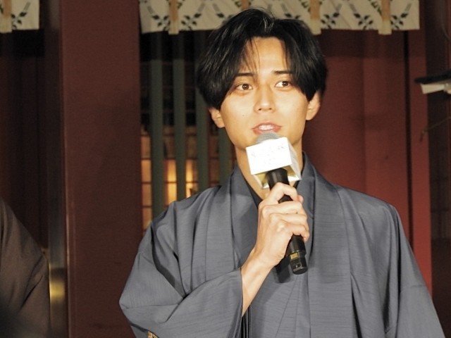 この日のために用意された華やかな装いについて、永瀬廉さんは「劇中の最後のシーンでも着てたような色味の袴と鬼龍院家の家紋も入れていただいて、そこも一つのポイントですね。こういう和装を着させていただくと撮影の時を思い出して懐かしい気持ちになりました。」と感慨深げに語りました。その魅力を伝えようと永瀬さんが背中や横を向いて一回転すると、すかさず吉川愛さんから「横は要らないんじゃない?(笑)」と愛のあるツッコミが入り、会場は和やかな笑いに包まれました。