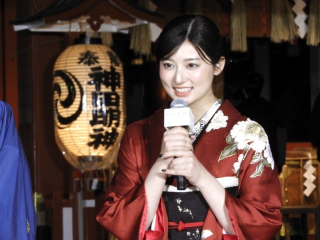 陽が落ち、静謐な空気に包まれた神田明神。そこへ、劇中の世界観を体現したかのような美しい和装に身を包んだ永瀬廉さん、吉川愛さん、伊藤健太郎さん、片岡凜さん、そして池田千尋監督の5名が登場しました。