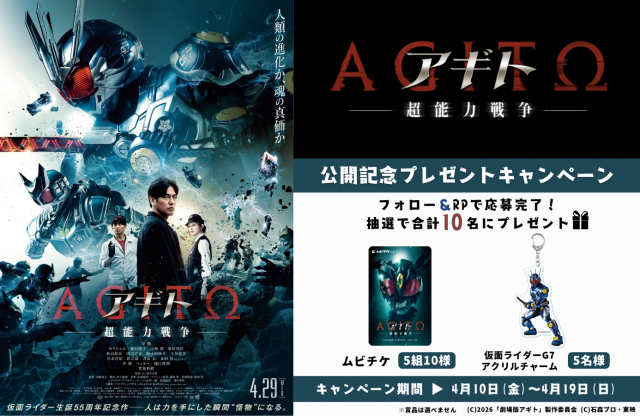 この度、映画公開を記念して、映画『アギト ー超能力戦争ー』のムビチケペアセットを5組10名様に、仮面ライダーG7アクリルチャームを5名様に抽選でプレゼント!