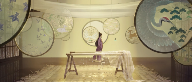 解禁された予告編では、工芸品の保存・修復を担う「秘宝閣」を舞台に、傘に宿る精霊・チンダイ、剣に宿る精霊・ワングイ、そして精霊の姿を見ることができる若き修復師・モーヤンが織りなす幻想的な物語の一端が映し出される。やわらかな光に包まれた空間描写、繊細に揺れる衣や髪、そして美しく重ねられた色彩が印象的で、物に宿る“想い”が運命を動かしていく、本作ならではの世界観を感じさせる映像となっています。